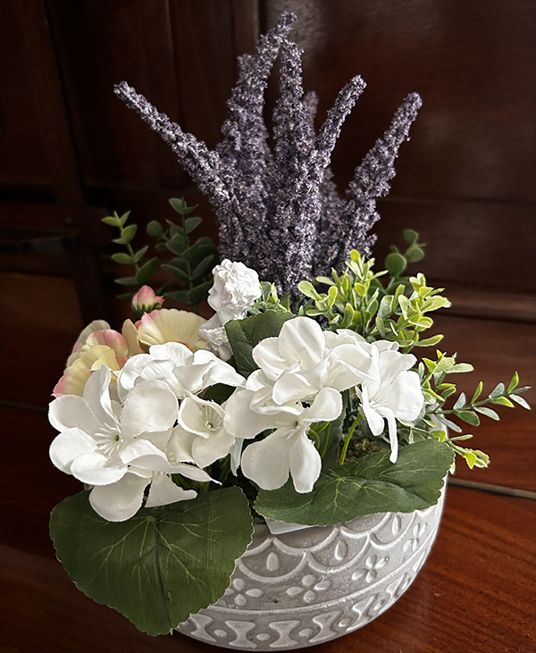 Différentes compositions de fleurs artificielles en fonction du stock disponible vous sont proposées.
